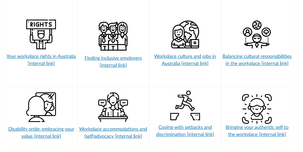 Figure 2: A visual of the topics available in the ‘Strength in Diversity: Enhancing your employment journey’ resource.